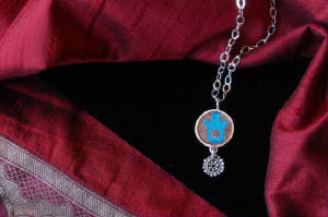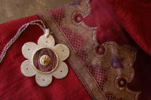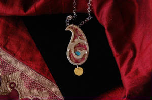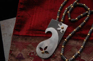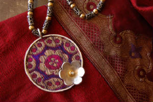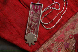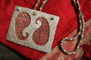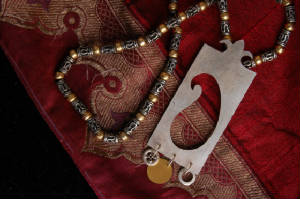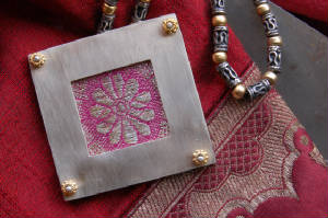 Silver, 18 K Gold Beads & Fabric 2"X3/4"