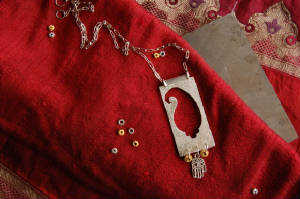 18 K Gold Beads & Fabric 2”X 2 3/4”