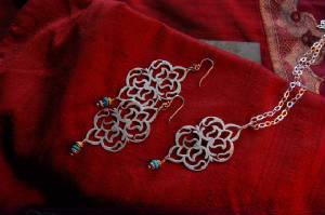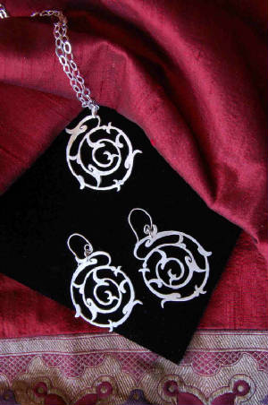 of Silver Pendant & Earrings W/18 K Gold Beads & Turquoise